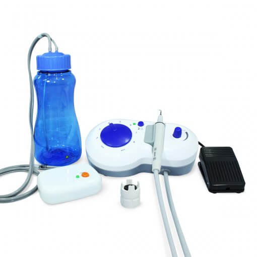 Seu painel possui botões que possibilitam o ajuste preciso da potência do ultrassom e do fluxo da água, para que o funcionamento do equipamento se adéque às necessidades específicas de cada procedimento. Permitindo inclusive trabalhos a seco.