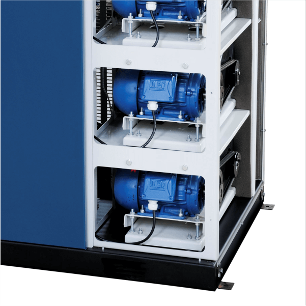 Radiador de ar integrado a unidade compressora para reduzir a temperatura do ar comprimido.